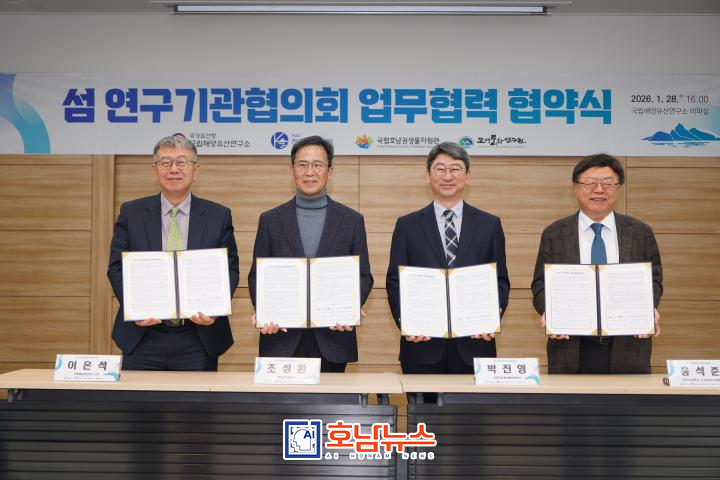 국가유산청 국립해양유산연구소(소장 이은석)는 한국섬진흥원(원장 조성환), 국립호남권생물자원관(관장 박진영), 국립목포대학교 도서문화연구원(원장 홍석준)과 함께 지난 1월 28일 오후 4시, 전남 목포에 위치한 국립해양유산연구소 회의실에서 ‘섬 연구기관협의회’ 업무협력 협약을 체결했다.