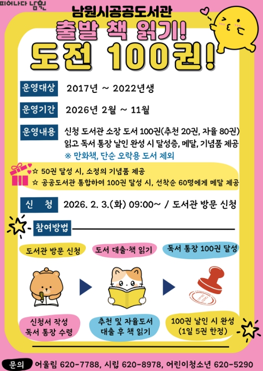 ![]() 2026년 ‘출발 책 읽기 도전 100권’ 운영 |