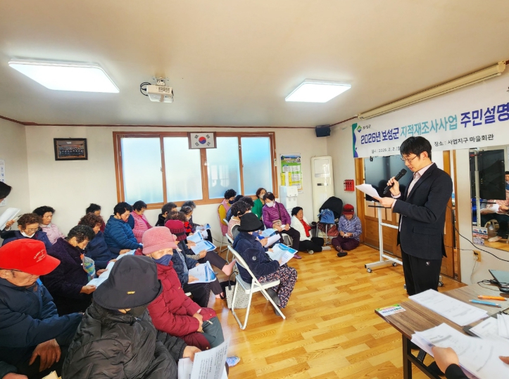 ![]() 보성군, ‘2026년 지적재조사사업 주민설명회’추진_지적재조사사업에 대해 주민들에게 설명하고 있다 |