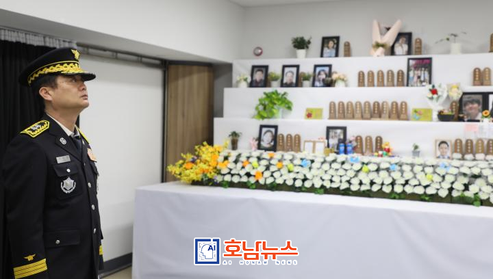 The Jeonnam Fire Service announced on the 9th that Choi Min-cheol, the 21st Chief of the Jeonnam Fire Service, began his tenure by paying tribute at the joint memorial for victims of the Jeju Air passenger plane accident, set up at Muan International Airport.