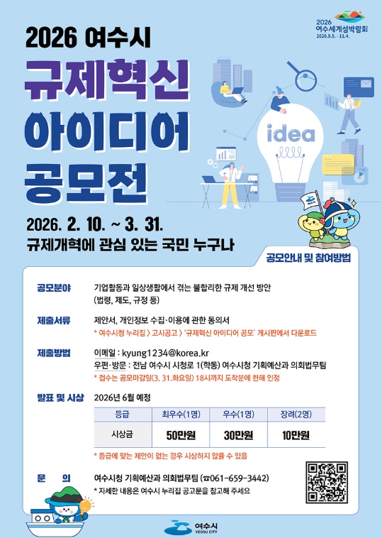 ![]() 2026 여수시 규제혁신 아이디어 공모전 포스터 |