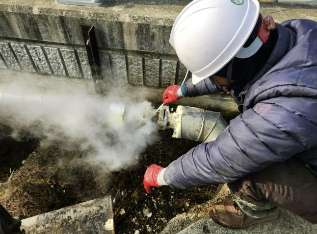![]() 상하수도사업소 관계자가 상수도 관로 동결에 대응해 해빙 공사 하는 모습 |