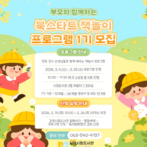![]() 김제시립도서관, 2026년 북스타트 책놀이 프로그램 1기 운영 |