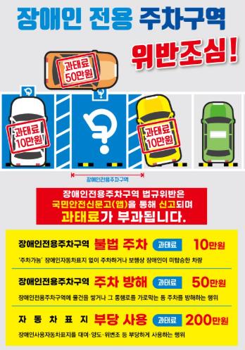 ![]() “장애인전용주차구역, ‘잠깐 주차’ 도 위반입니다” |