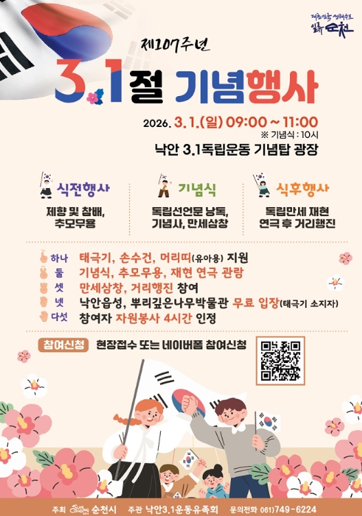 시민과 어린이들이 함께 미니 태극기와 머리띠를 착용하고 1919년 3월 1일의 함성을 재현하며, 자주독립의 의미를 되새기는 시민 참여 행사로 펼쳐질 예정이다.