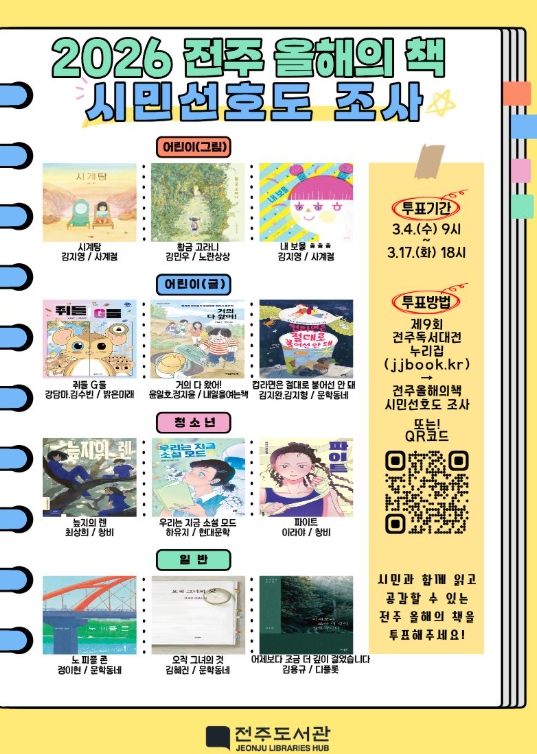 ![]() 2026 전주 올해의 책, 시민의 선택으로 결정 |