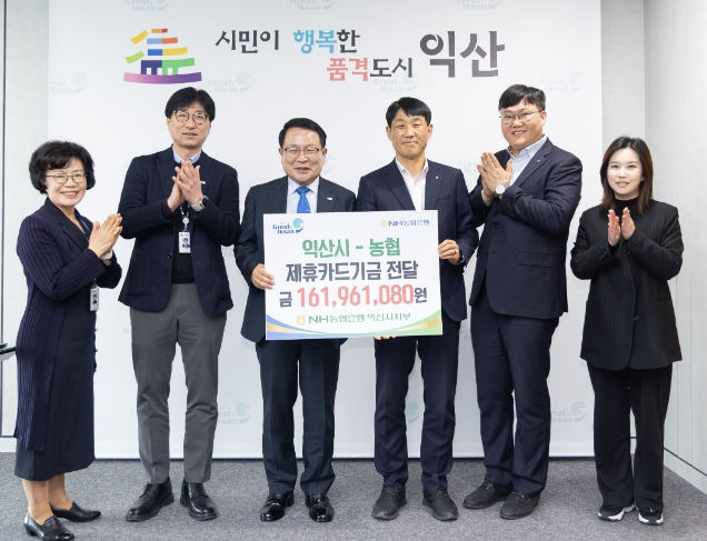 정헌율 시장은 "매년 제휴카드 기금 적립은 물론 다양한 협력 사업을 통해 지역 발전에 함께해 주고 있는 NH농협은행 익산시지부에 깊이 감사드린다"며 "전달받은 기금은 익산시 발전을 위해 소중하게 사용하겠다"고 말했다.