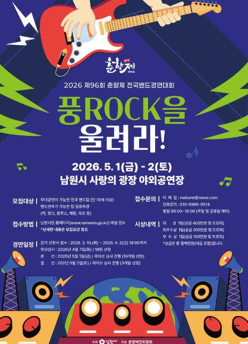 ![]() 남원 춘향제 ‘풍ROCK을 올려라’ 참가자 모집 |
