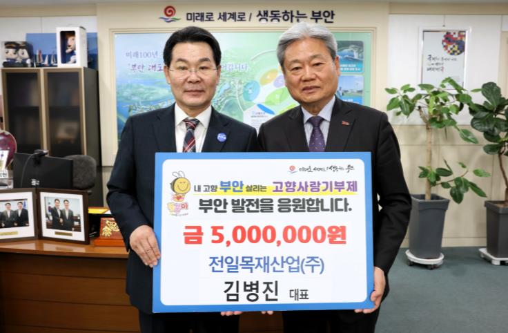 ![]() 김병진 전일목재산업㈜ 대표, 부안군 고향사랑기부금 200만원 기부 |