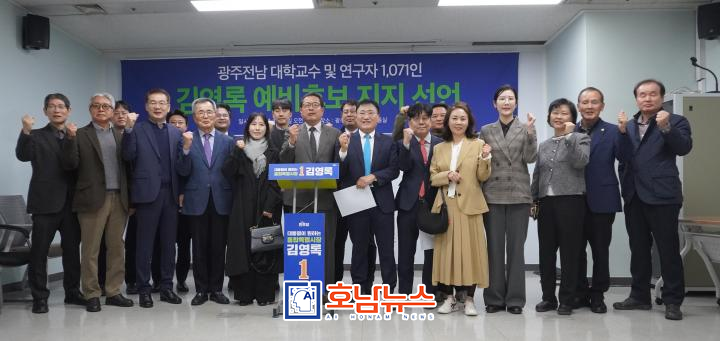 광주·전남 지역 대학 교수와 연구자 1,071명이 김영록 더불어민주당 전남광주특별시장 예비후보에 대한 지지를 공식 선언하며, 통합특별시 선거를 둘러싼 흐름이 새로운 국면에 들어섰다.