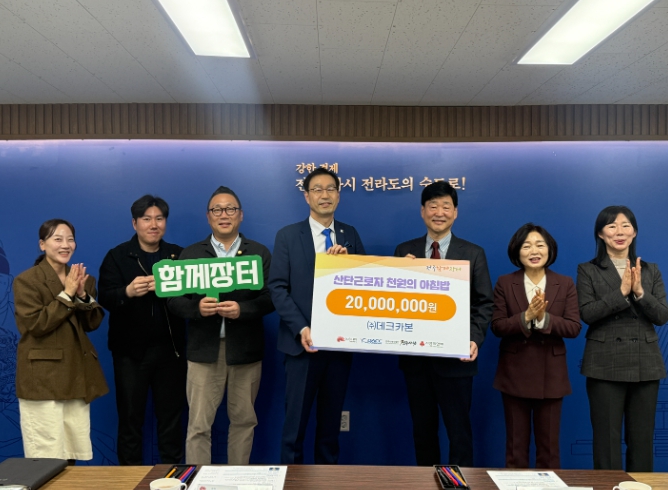 ㈜데크카본은 19일 전주시청을 찾아 ‘산단 근로자 천원의 아침밥 사업에 사용해 달라며 기부금 2000만 원을 전주시에 전달했다.