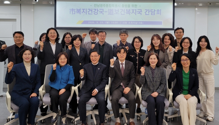전남도와 광주시는 23일 광주시청에서 두 시·도 보건복지국장과 과장단 등 30여 명이 참석한 가운데 ‘전남·광주 행정통합 대응 보건복지부서 간담회’를 개최했다.