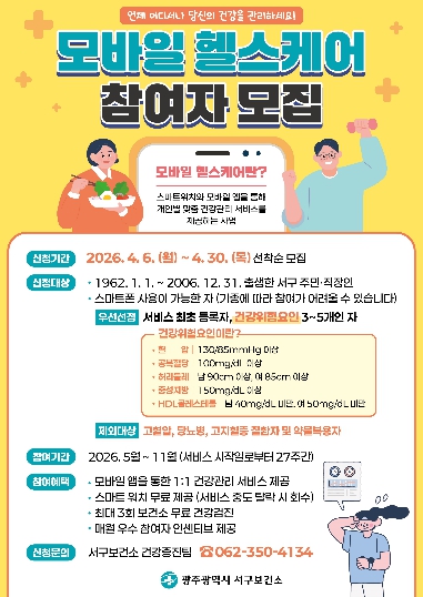 ![]() 광주 서구, “6개월 무료 건강코치” 신청하세요 |