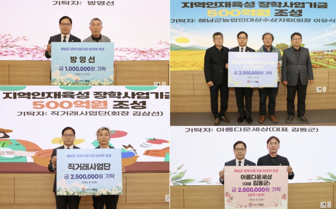 한편 군민들의 정성이 모여 현재 장학사업기금은 꾸준히 확대되고 있으며, 해남군은 2032년까지 500억원 조성을 목표로 기금 확충에 박차를 가하고 있다. 군은 이를 바탕으로 지역의 백년대계를 이끌 인재 육성의 든든한 기반을 마련해 나갈 계획이다.