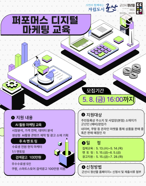 시 관계자는 “이번 프로그램은 단순 광고비 지원을 넘어 성과 분석과 개선 피드백을 함께 제공한다”며 “이를 통해 창업가 스스로 마케팅을 수행할 수 있는 역량을 강화하고, 지역 온라인 창업가의 디지털 전환과 지속 가능한 매출 성장을 적극 지원하겠다”고 밝혔다.
