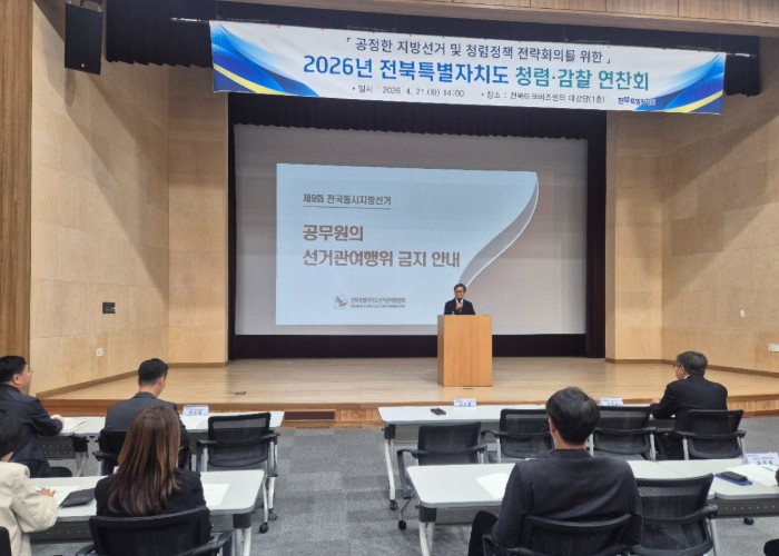김진철 전북자치도 감사위원장은 “선거를 앞둔 시기일수록 공직자의 정치적 중립과 공정한 직무 수행이 무엇보다 중요하다”며 “도민의 신뢰를 지키기 위해 공직기강 확립에 최선을 다하겠다”고 밝혔다.