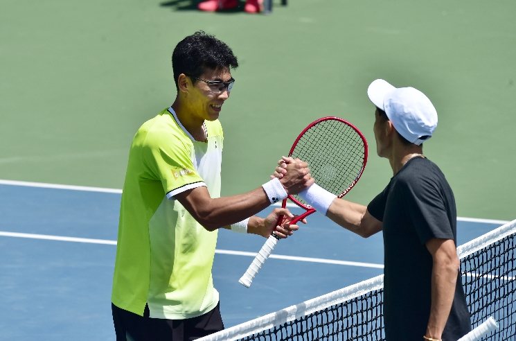정현은 21일 광주광역시 진월국제테니스장 센터코트에서 열린 대회 본선 남자 단식 1라운드(32강전)에서 제이슨 정(36·대만)를 2-0(6-3, 6-4)으로 꺾고16강에 안착했다.