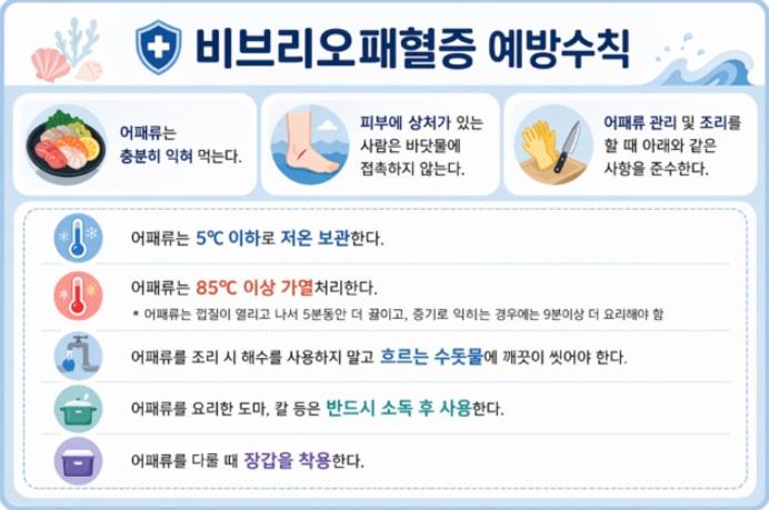 보건소 관계자는 “비브리오패혈증은 어패류를 충분히 익혀 섭취하고 개인위생 수칙을 철저히 지키는 것만으로도 예방이 가능하다”며 “증상 발생 시 지체없이 치료를 받는 것이 무엇보다 중요하다”고 말했다.