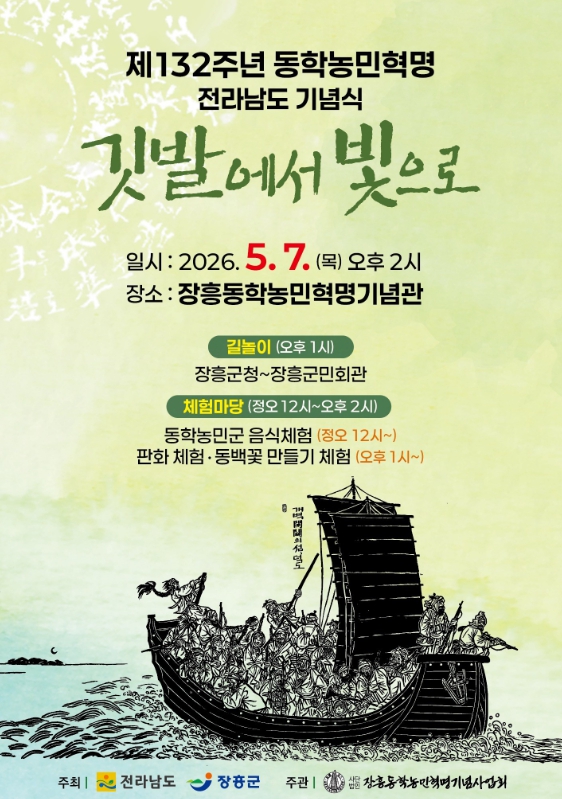이번 기념식은 낮 12시부터 오후 3시까지 장흥동학농민혁명기념관과 장흥읍 중앙로 일원에서 진행되며, 동학농민혁명의 역사적 의미를 되새기고 그 정신을 계승하기 위한 다양한 프로그램으로 꾸며진다.