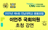 전라남도 박인석 기자2025. 11.16[뉴스채널]이언주 국회의원이 전남대학교 용봉포럼에서 한미 산업동맹의 흐름 속에서 호남경제의 새로운 성장 전략과 산업적 돌파구를 모색한다. 14일 전남대학교(총장 이근배)에 따르면, 오는 11월 18일 오후 2시, 대학본부 국제회의동 2층 용봉홀에서 ‘2025 제4회 전남대학교 용봉포럼’을 개최한다. 이번 포럼은 올해 마지막 용봉포럼으로, 사회 각 분야의 리더들이 모여 국가와 지역의 미래를 논의하는 지식 교류의 장이다. 이날 초청 연사로 나서는 이언주 국회의원(제22대 국회·용인시정)은 더불어민주당 최고위원이자 미래경제성장전략위원...