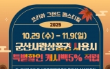 서구 박인석 기자2025. 10.27[뉴스채널]군산시가 오는 29일부터 11월 9일까지 12일간 정부가 추진하는 ‘코리아 그랜드 페스티벌’에 참여해 군산사랑상품권 이용자에게 파격적인 추가 혜택을 제공한다. 이번 행사는 ‘희망이 되는 소비, 함께 성장하는 경제’를 슬로건으로 한 대한민국 최대 규모의 국가통합 소비 활성화 프로젝트로 시민 소비 촉진과 지역 경제 회복을 목표로 하고 있다. 행사 기간 내에 군산시는 모바일 및 카드형 군산사랑상품권을 사용하는 소비자에게 기존 할인율 13%에 더해 추가로 5% 캐시백으로 적립해주는 특별 행사를 진행한다. 이에 따라 시민...