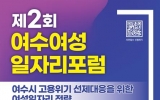 여수 박인석 기자2025. 10.23[뉴스채널]여수시는 지역 산업구조 변화와 경기 침체 속에서 여성 고용 활성화 방안을 논의하기 위해 오는 10월 29일 오후 2시 여수상공회의소에서 ‘제2회 여수여성 일자리 포럼’을 개최한다. 이번 행사는 ‘여수시 고용위기 선제대응을 위한 여성 일자리 전략’을 주제로, 여성새로일하기센터 경력단절 예방지원사업의 일환으로 마련됐으며 여수시가 주최하고 여수여성인력개발센터와 여성새로일하기센터가 주관한다. 특히 이번 포럼은 지난 8월 28일 여수시가 ‘고용위기 선제대응지역’으로 지정된 이후 처음 열리는 포럼으로, 지역 고용위기 극복을 위한...
