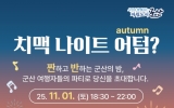 남구 박인석 기자2025. 10.22[뉴스채널]깊어가는 가을밤, 군산시가 탁 트인 야외에서 즐기는 특별한 행사 ‘치맥나이트 어텀(Autumn)?’을 11월 1일 저녁 군산 내항 일원에서 개최한다. 이번 행사는 군산지역 관광객의 체류 시간을 늘리고 지역 경제 활성화를 도모하기 위해 마련됐다. 대상은 다른 지역에서 군산을 찾아온 방문객으로 관내 숙박업소 예약자에 한해 진행되며, 모집 인원은 80여 명이다. 특히 참가자 전원에게는 바삭한 치킨과 시원한 생맥주 2잔이 기본으로 제공된다. 참가자들은 시원한 맥주와 환상의 궁합을 자랑하는 치킨을 즐기며, 군산항 198...