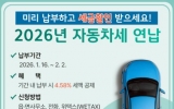 장성 박인석 기자2026. 01.16[AI 호남뉴스]장흥군은 15일 2026년도 자동차세 연납 고지서를 장흥군에 등록된 모든 차량 소유자에게 일괄 발송했다고 밝혔다. 자동차세 연납 제도는 매년 6월과 12월 두 차례로 나눠 부과되는 정기분 자동차세를 1월에 미리 납부하면 공제 혜택을 주는 제도다. 올해도 1월 중 납부 시 4.5%의 세액 공제가 적용되며, 최근 어려운 경제 상황 속에서 가계 부담 완화에 도움이 될 것으로 군은 기대하고 있다. 납부 기한은 2026년 1월 16일부터 2월 2일까지이며, 납부 기간 내에 연납 고지서를 기반으로 납부를 완료하면 별도 신...
