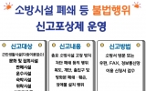 장수 박인석 기자2025. 09.23[뉴스채널]장흥소방서는 2025년 연중 운영되는 소방시설 불법행위 신고포상제를 통해 군민과 함께 안전한 지역사회 만들기에 나선다고 밝혔다. 이 제도는 다중이용시설과 공동주택 등에서 발생하는 비상구 폐쇄, 소방시설 차단 등 불법행위를 주민이 발견해 알릴 수 있도록 한 제도로, 불법행위가 확인되면 소정의 포상금이 지급될 수 있다. 군민이 불법행위를 발견하면 국민신문고(PC·모바일), 장흥소방서 누리집(홈페이지), 또는 휴대폰으로 촬영한 사진 제출을 통해 손쉽게 신고할 수 있다. 신고는 간단히 접수 가능하며, 관할 소방서에서 확인 ...
