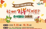 남원 박인석 기자2025. 09.19[뉴스채널] 보성군은 다가오는 추석을 맞아 고향사랑기부제 활성화를 위해 ‘함께 기부할까요? 추석맞이 이벤트’를 오는 9월 22일부터 10월 31일까지 진행한다고 밝혔다. 이번 이벤트는 군민과 출향인, 지인들이 함께 참여할 수 있도록 추천인과 기부자 모두에게 경품을 제공하는 방식으로 운영된다. 친구·가족·지인 등에게 보성군 고향사랑기부제를 추천하고, 추천을 받은 사람이 실제 기부에 참여하면 추천인과 기부자 모두에게 인기 답례품이 주어진다. 참여 방법은 이벤트 기간 내에 추천인과 추천을 받은 기부자의 정보를 이메일 ...