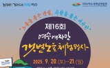 여수 박인석 기자2025. 09.19[뉴스채널]여수시는 오는 9월 20일부터 21일까지 이틀간 소라면 해넘이길 일원에서 ‘제16회 여수여자만갯벌노을체험행사’를 개최한다. 이번 행사는 여자만의 황홀한 석양과 갯벌 생태, 문화를 체험하며 가을 바다의 정취를 만끽할 수 있도록 준비됐다. 대표 체험 프로그램으로는 ▲대나무 망둥어 낚시 ▲바지락 캐기 ▲맨손 고기잡이 ▲복개도 보물찾기 등이 마련돼 아이들과 가족 단위 관람객이 직접 참여할 수 있다. 올해는 학생 사생대회와 청소년 댄스 페스티벌의 수상 인원을 확대하고 갯벌노을 사진 콘테스트와 맨손 전복 따기 체험을 새롭게 추...