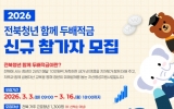 나주 박인석 기자2026. 03.05[AI 호남뉴스] 익산시가 취업 준비부터 지역 정착, 자산 형성까지 청년의 자립을 돕는 전방위 지원에 나섰다. 익산시는 지역인재 유출 방지와 청년들의 생활 안정을 지원하기 위해 총 32억 원 규모의 청년 지원 사업 참여자를 모집한다고 5일 밝혔다. 지원 사업은 △전북형 청년활력수당 △전북청년 지역정착 지원사업 △전북청년 함께 두배적금 등 3개 사업이다. 지원 대상은 익산시에 주민등록을 둔 18~39세 청년(1986년 1월 1일~2007년 12월 31일 출생)으로, 중위소득 및 근로 요건 등을 충족해야 한다. '전북형 청년...