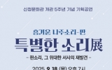 담양 박인석 기자2025. 09.04[뉴스채널]전라남도 나주시가 나주신청문화관 개관 5주년을 맞아 특별 무대를 진행한다. 4일 나주시에 따르면 오는 18일 오후 7시 기획공연 ‘흥겨운 나주소리-판 특별한 소리展’을 열어 소리의 기원과 전승의 의미를 되새기는 특별 공연을 개최한다. 이번 공연은 판소리의 본향 나주에서 지역 예인들의 넋을 기리고 위로하는 ‘나주신청 선생안제’를 재현하며 판소리의 시작부터 일제강점기를 거쳐 현재에 이르기까지의 변화상을 무대에 담는다. 출연진으로는 국가무형유산 판소리 예능 보유자 윤진철, 판소리고법 전승 교육사 정회천, 승무 전승 교육사...