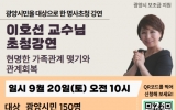 익산 박인석 기자2025. 09.02[뉴스채널]광양시가족센터는 오는 9월 20일 센터 4층 가족공연장에서 광양시민을 대상으로 명사초청 강연을 개최한다고 밝혔다. 이번 강연은 ‘현명한 가족관계 맺기와 관계 회복’을 주제로, 행복한 가정을 유지하고 만들어가기 위해 개인이 어떤 역할을 해야 하는지 함께 고민하는 시간으로 마련됐다. 강연자로 초청된 이호선 교수는 'JTBC 이혼숙려캠프'에서 명쾌한 부부상담으로 큰 호응을 얻고 있으며, 이번 강연에서도 가족관계 속 현실적인 갈등과 고민을 시민들과 나누며 해법을 모색할 예정이다. 참여 신청은 광양시민 누구나 무료로 가능하며...