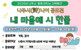 함평 박인석 기자2025. 08.28[뉴스채널]전라남도 나주시지역사회보장협의체 노인 실무분과는 관내 만 65세 이상 어르신을 대상으로 ‘2025년 나주시(詩)니어 제1회 내 마음에 시 한 줄 공모전’을 오는 9월 1일부터 9월 30일까지 개최한다. 이번 공모전은 나주시 거주 어르신이라면 누구나 편안하게 자신의 이야기를 담아 참여할 수 있도록 마련된 특화사업이다. 평소 문화·예술 활동에 익숙하지 않은 분들도 부담 없이 시 창작의 즐거움을 느끼고 이를 통해 삶의 순간과 감정을 글로 표현하며 지역사회에 따뜻한 울림을 전하는 것을 목표로 한다. 응모 주제는 ‘가족’ 또는...