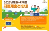 무안 박인석 기자2026. 01.09[AI 호남뉴스]무안군은 문화누리카드(통합문화이용권) 이용자 가운데 수급 자격을 유지한 대상자에게 별도의 신청 절차 없이 2026년도 지원금을 자동으로 충전해 주는 ‘자동 재충전 제도’를 시행한다고 밝혔다. 문화누리카드는 만 6세 이상 기초생활수급자와 차상위계층을 대상으로 문화예술·여행·체육 분야 이용을 지원하는 카드로, 무안군은 2026년 문화누리카드 지원금을 전년 대비 1만 원 인상해 1인당 15만 원을 지원할 계획이다. 다만, 만 13~18세 청소년기 대상자와 만 60~64세 생애전환기 대상자의 경우 추가 지원이 적용돼 1...