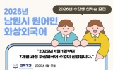 완주 박인석 기자2026. 02.26[AI 호남뉴스]남원시가 시민들의 어학 실력 향상과 글로벌 역량 강화를 위해 오는 3월 10일부터 ‘2026년 원어민 1:1 화상외국어 교육’ 수강생을 선착순으로 모집한다. 이번 교육은 오는 4월 1일 개강해 7개월간 진행되며, 영어·중국어·일본어 3개 과정으로 운영한다. 원어민 강사와 수강생을 1:1로 매칭해 실시간 화상 방식으로 수업을 진행하므로 학습자는 장소에 구애받지 않고 온라인을 통해 편리하게 회화 교육을 받을 수 있다. 지원 대상은 만 18세 이상의 남원시민이며, 수강료는 월 2만 원으로 책정해 교육비 부담을 줄였다....