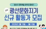 광산구 박인석 기자2026. 02.20[AI 호남뉴스]광주 광산구가 광산구 문화예술 온라인 홍보단 ‘2026년 광산문화지기’ 참여자를 3월 10일까지 모집한다. ‘광산문화지기’는 광산구의 다양한 문화예술 공연과 행사 현장을 직접 취재하고, 누리소통망(SNS)에 생생한 후기를 작성, 공유하는 온라인 홍보단이다. 광산문화지기는 4월부터 12월까지 약 9개월간 활동한다. 모집 인원은 10명 내외로, 문화예술에 관심이 많고 누리소통망(SNS) 활용이 능숙한 시민이라면 누구나 참여할 수 있다. 참여 방법은 광산구 누리집 새소식에서 신청 서류를 내려받아 3월 10일까지 전자...