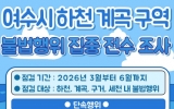 여수 박인석 기자2026. 03.16[AI 호남뉴스]여수시는 지난해에 이어 올해도 관내 하천·계곡 내 무단 점용과 불법 상행위 등 위법행위에 대한 집중단속을 통해 공공 이용 질서 확립을 추진한다고 16일 밝혔다. 올해는 지난해보다 단속 범위를 확대해 하천, 계곡, 구거(도랑), 세천 등에서 평상, 그늘막, 방갈로, 가설건축물, 데크 설치와 불법 경작, 형질변경 등 허가받지 않은 모든 행위를 단속한다. 시는 부시장을 단장으로 11개 팀으로 구성된 전담 TF팀을 구성해 3월부터 6월까지 불법행위를 집중 단속할 계획이다. 또한 재발 가능성이 높은 지역은 중점관리 대상...