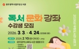 광주광역시 박인석 기자2026. 02.08[AI 호남뉴스]광주광역시 시립도서관(무등,사직,산수,하남)은 3월부터 5월까지 운영하는 상반기 독서·문화교실 수강생을 오는 10일부터 선착순 모집한다. 상반기 독서·문화교실은 무등도서관 8개, 사직도서관 4개, 산수도서관 5개, 하남도서관 5개 등 총 22개 강좌다. 무등도서관은 ▲고전강독 ▲한자교실 ▲명쾌한 사주명리학 ▲나를 채우는 글쓰기 ▲서예교실 ▲민화교실 ▲한국화교실 ▲낭만통기타 등을 운영한다. 사직도서관은 ▲감성 시 낭송 ▲중장년을 위한 그림책 인문살롱 ▲양림스케치 ▲책과 함께하는 글쓰기(어린이 대상)를 준비했다. ...