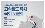 광주광역시 박인석 기자2025. 12.07[AI 호남뉴스]해남군은 오늘 17일 국회도서관 대강당에서 해남과 완도를 경유해 제주까지 연결되는‘서울~(해남·완도 경유) 제주 고속철도 유치 국회토론회’를 개최한다. 이번 토론회는 지역구 의원인 박지원 의원을 비롯한 해남 출신인 민홍철·민병덕·민형배 의원과 완도 출신의 허종식·손명수 의원이 공동 주최하며, 해남군과 완도군이 주관한다. 토론회는 서울~제주간 고속철도의 당위성을 설명하고 국회 차원에서 대국민 홍보를 통한 분위기 확산으로 제5차철도망 구축계획 반영을 위해 마련됐다. 서울~제주 고속철도 건설사업은 총사업비 27조...