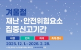 군산 박인석 기자2025. 12.04[AI 호남뉴스]군산시가 12월부터 내년 2월까지 ‘겨울철 재난·안전 위험요소 집중신고 기간’을 운영한다고 4일 밝혔다. 이번 기간에는 겨울철에 발생 가능성이 높은 ▲대설 ▲ 한파 ▲화재 ▲축제·행사 등 4가지 유형의 위험 요소를 대상으로 시민이 직접 신고할 수 있다. ‘대설’ 분야는 △도로 제설 미흡 △제설함 관리 불량 △시설물 붕괴 위험이며, ‘한파’ 분야는 △인도 결빙 △고드름 낙하 △한파 쉼터 불편 등이다. ‘화재’ 분야는 △비상구 물건 적치 △소화 시설 불량 △불법 취사·소각 등이고, ‘축제·행사’ 분야는 △인파 밀집...