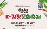 진안 박인석 기자2025. 10.21[뉴스채널]익산에서 김장 고민을 해결하고, 체험까지 즐기는 축제의 장이 펼쳐진다. 익산시는 11월 22~23일 중앙체육공원에서 '김치명인과 함께하는 K-김장문화축제 익산'을 주제로 시민 누구나 쉽게 참여할 수 있는 김장 행사를 진행한다고 21일 밝혔다. 이번 행사는 김장 준비에 부담을 느끼는 소비자들을 위해 마련됐다. 김장체험 꾸러미는 100% 국내산 농산물로 구성돼 간편하게 김장을 하고 싶은 40~50대는 물론 김장 첫 도전에 나선 20~30대에게도 안성맞춤이다. 축제는 익산 농가의 절임배추와 김치명인이 직접 만든 양념...