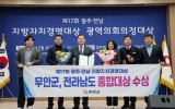 나주 박인석 기자2025. 11.26[AI 호남뉴스]전남 무안군이 26일 광주광역시 염주체육관 내 올림픽기념국민생활관 1층 세미나실에서 열린 제17회 광주·전남 지방자치경영대상에서 ‘종합대상’을 수상하며 종합행정 분야에서 전방위로 탁월한 성과를 인정받았다. 광남일보가 주최하고 전라남도와 광주광역시가 후원하는 이번 경영대상은 7개 부문에서 각 지자체의 정책성과를 심사해 수상기관을 선정하며, 5개 이상 부문에 출전한 지자체 중 우수 평가를 받은 곳에 종합대상을 수여한다. 무안군은 ▲행정서비스 ▲문화관광 ▲보건복지 ▲경제활성화 및 일자리창출 ▲안전환경 등 5개 분야...