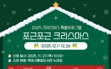 목포 박인석 기자2025. 11.26[AI 호남뉴스]목포시립도서관은 12월을 맞아 지역주민들이 따뜻한 연말을 즐길 수 있도록 크리스마스 특별프로그램 ‘포근포근 크리스마스’를 운영한다. 12월 7일 오후 2시에는 밴드 판의 영화음악 북콘서트 ‘오버 더 필름’이 열린다. 영화음악과 원작 도서를 함께 소개하는 공연으로 남녀노소 누구나 즐길 수 있다. 이어 14일에는 ‘루돌프 케이크 만들기’, 16일에는 ‘스노우볼 티라이트 만들기’ 강좌가 진행돼 특별한 체험 기회를 제공한다. 도서관 로비에는 크리스마스트리가 설치되며, 방문객을 대상으로 즉석 사진 촬영 이벤트도 운영된...