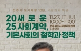 전라남도 박인석 기자2025. 11.25[AI 호남뉴스]현 정부의 국정 방향인 기본사회를 주제로 도시의 사회제도와 정책 방향이 나아갈 모색하는 특별한 강연이 전주에서 열린다. 전주시와 전주시도시재생지원센터는 오는 27일 오전 10시, 센터 다울마당에서 센터 설립 10년을 기념해 은민수 고려대학교 공공정책대학 학술연구교수의 특별 강연을 개최한다. 이번 강연은 현 정부의 국정 방향인 ‘새로운 사회계약, 기본사회의 철학과 정책’을 주제로 도시 내 사회제도와 정책의 새로운 방향을 모색하는 자리로 꾸며질 예정이다. 강연을 맡는 은민수 교수는 현재 대통령 직속 지방시대위...