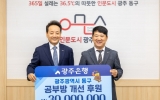전라북도도 박인석 기자2025. 11.25[AI 호남뉴스]광주은행은 25일, 광주 동구청에서 ‘희망이 꽃피는 공부방’ 사업을 위한 후원금 3천만 원을 기탁했다고 밝혔다. 기탁식에는 광주은행 김재춘 부행장과 임택 동구청장 등 관계자들이 참석해 나눔의 의미를 함께했다. 이번 후원금은 동구 관내 지역아동센터 3개소의 환경 개선에 사용됐다. 아동 안전을 위한 방염 벽지 및 장판 교체, 학습용 책상·의자 교체는 물론 생활공간 내 수납시설 및 싱크대 개보수 등 시설 전반을 정비해 아동들이 보다 안전하고 쾌적한 환경에서 생활할 수 있도록 지원했다. ‘희망이 꽃피는 공부방’은 광...