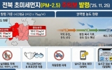 익산 박인석 기자2025. 11.25[AI 호남뉴스]전북특별자치도 보건환경연구원은 25일 오전 전북 서부권과 중부권에 국외 오염물질 유입의 영향으로 초미세먼지(PM-2.5) 농도가 높아지며 초미세먼지 주의보를 발령했다고 밝혔다. 초미세먼지(PM-2.5) 주의보는 시간 평균 농도가 2시간 이상 75㎍/㎥을 넘길 때 발령된다. 이날 서부권역은 오전 9시 99㎍/㎥, 10시 84㎍/㎥, 중부권역은 오전 10시 81㎍/㎥, 11시 83㎍/㎥를 기록하며 기준치를 초과했다. 이번 주의보는 중부와 남서부 지역을 중심으로 오전까지 국외 미세먼지가 유입되면서 발령된 것으로 분석된...