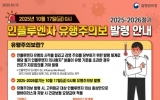 전주 박인석 기자2025. 11.18[뉴스채널] 최근 쌀쌀해진 날씨 속 인플루엔자 감염 환자가 속출하는 가운데 전주시보건소(소장 김신선)가 주의를 당부했다. 보건소는 2025년~2026년 절기 인플루엔자 유행이 예년보다 이르게 시작된 만큼 고위험군 보호 및 지역 사회 확산 방지를 위해 인플루엔자 예방수칙 등 감염병 예방수칙을 준수해달라고 18일 밝혔다. 질병관리청에서 운영하는 의원급 의료기관의 인플루엔자 표본 감시 결과, 지난달 17일 ‘인플루엔자 유행주의보’가 발령된 이후 인플루엔자 의사환자가 매주 꾸준히 증가하고 있다. 실제로 2025년 45주차(11...