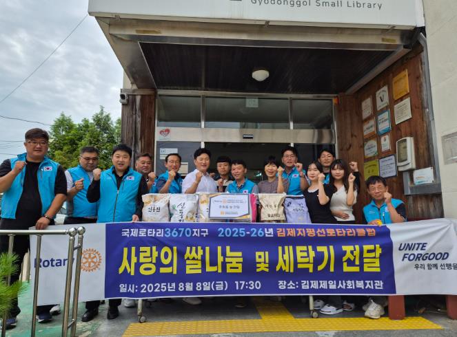 ![]() 김제지평선로타리클럽, 김제제일사회복지관에 쌀100kg 및 세탁기 후원 |